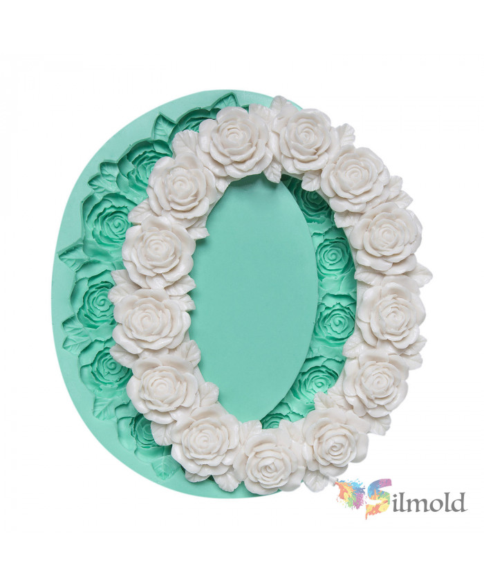 Frame decorated with Roses Silicone Mold